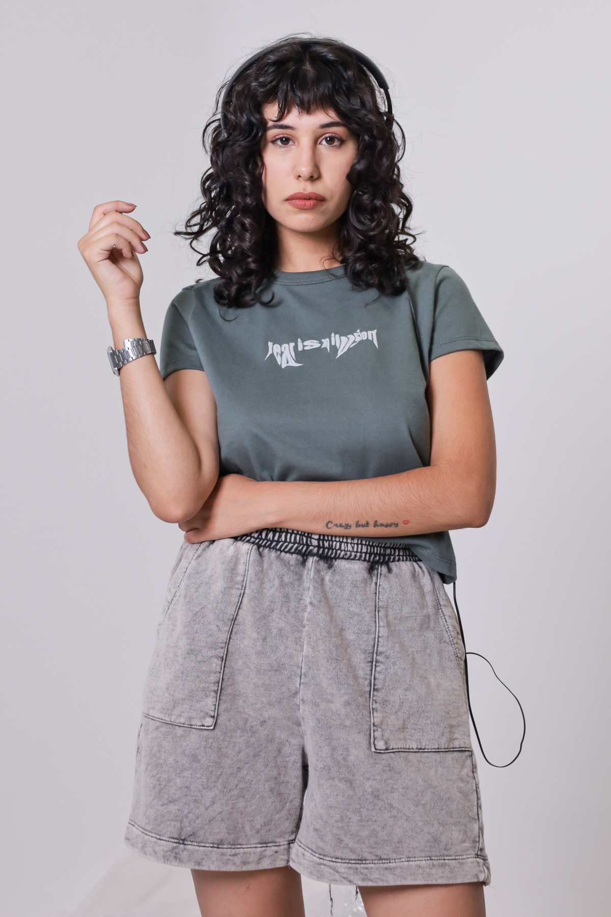 Remera algodón 100%, corte baby tee, con estampa frontal