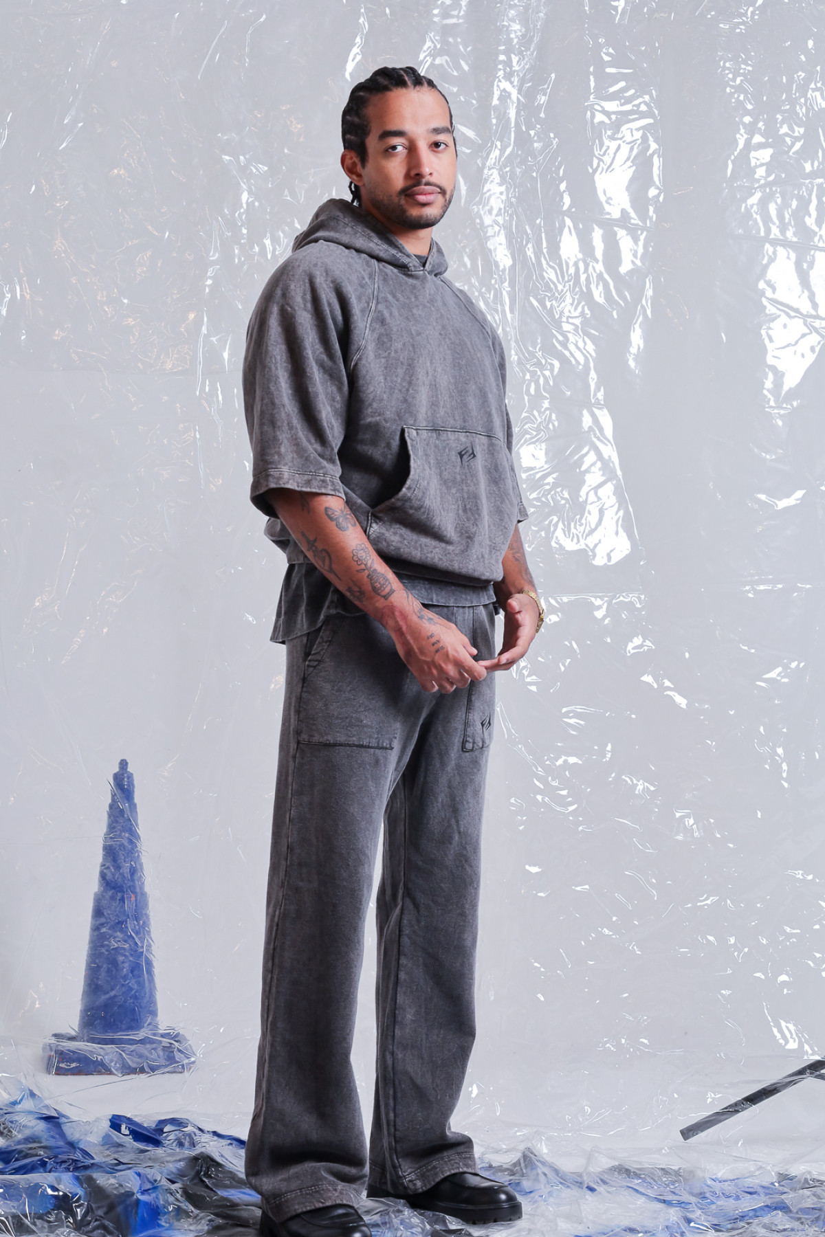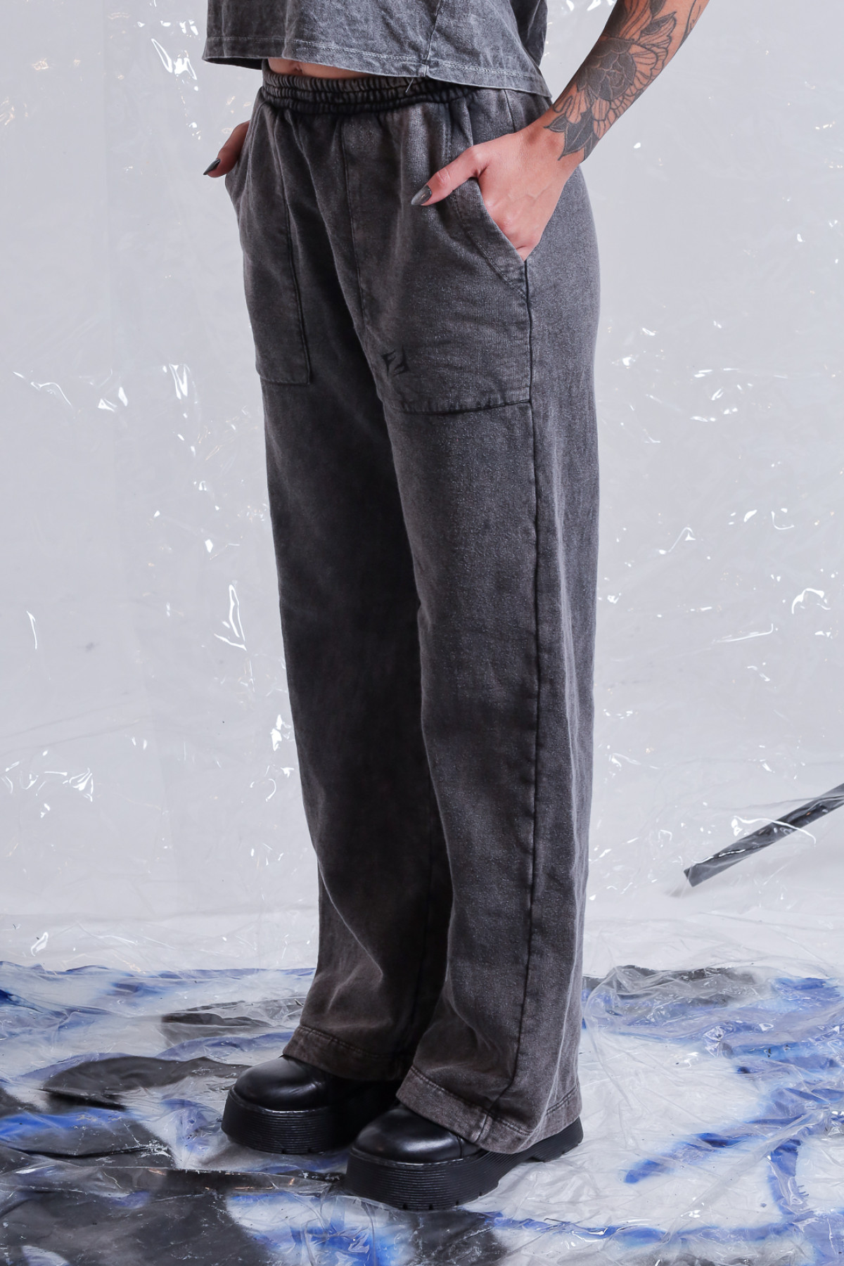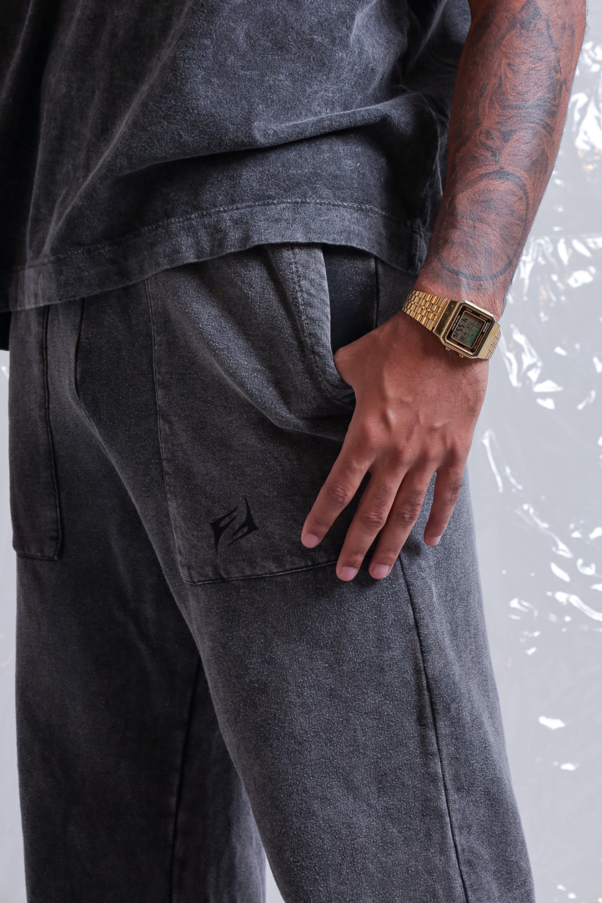 Pantalon rustico lavado acid, con bolsillos plaqué y logo