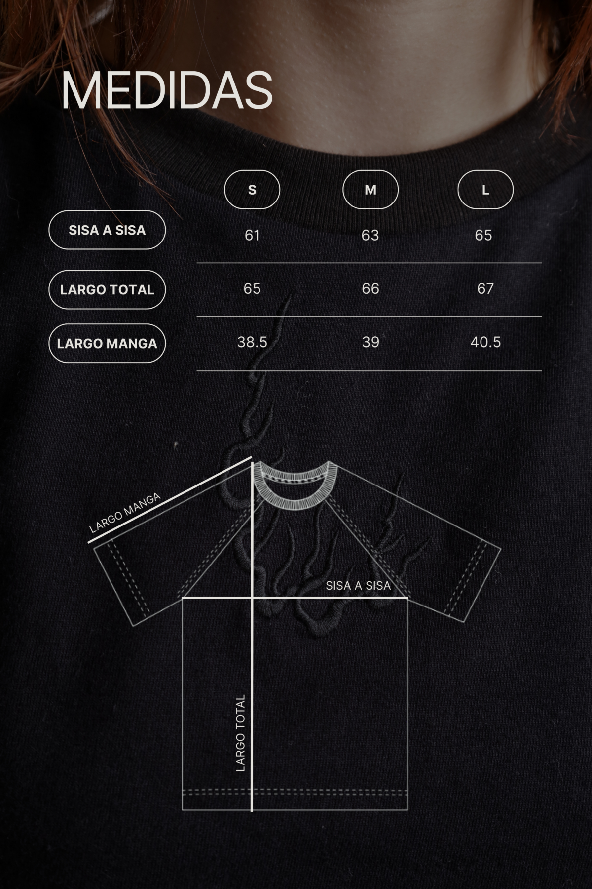 Remera jersey 20/1, algodón 100%. Calce boxy fit. Manga ranglan