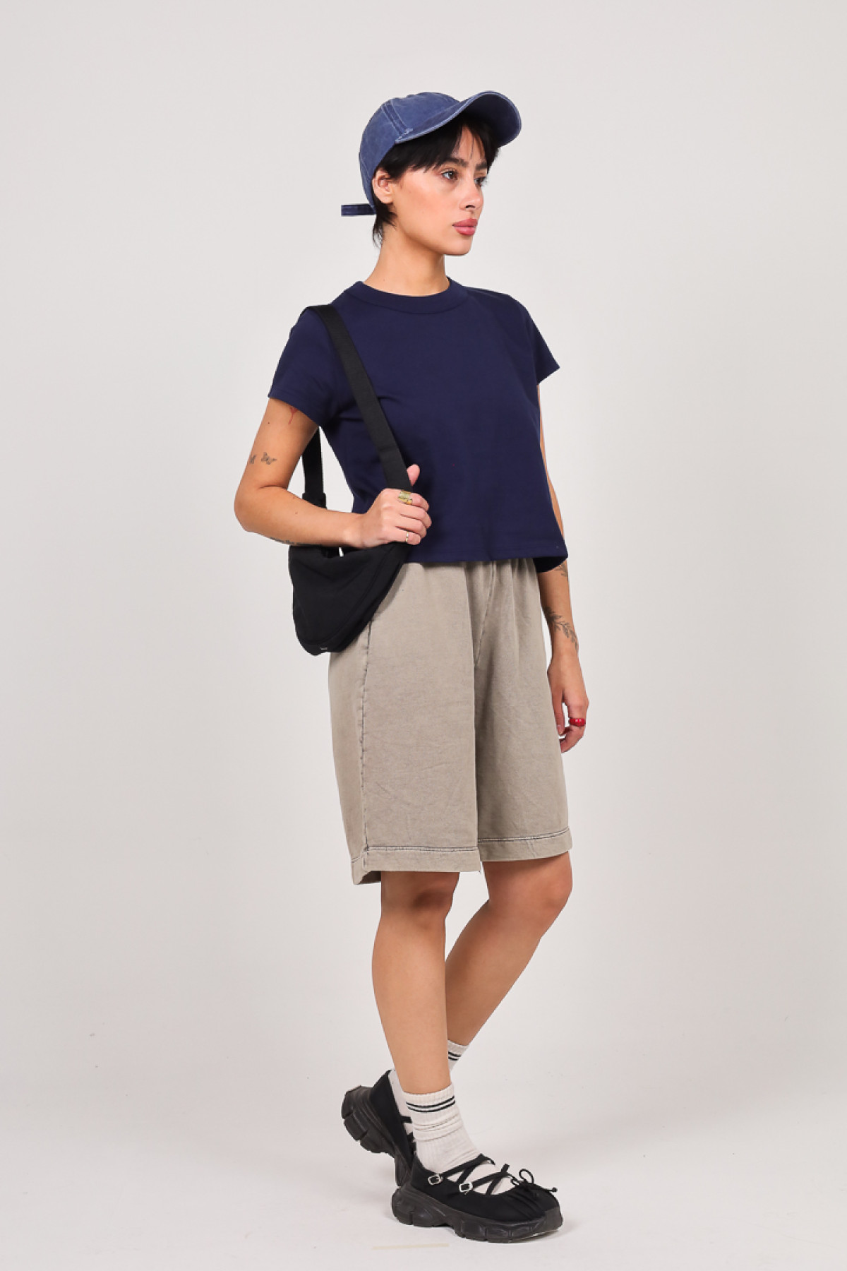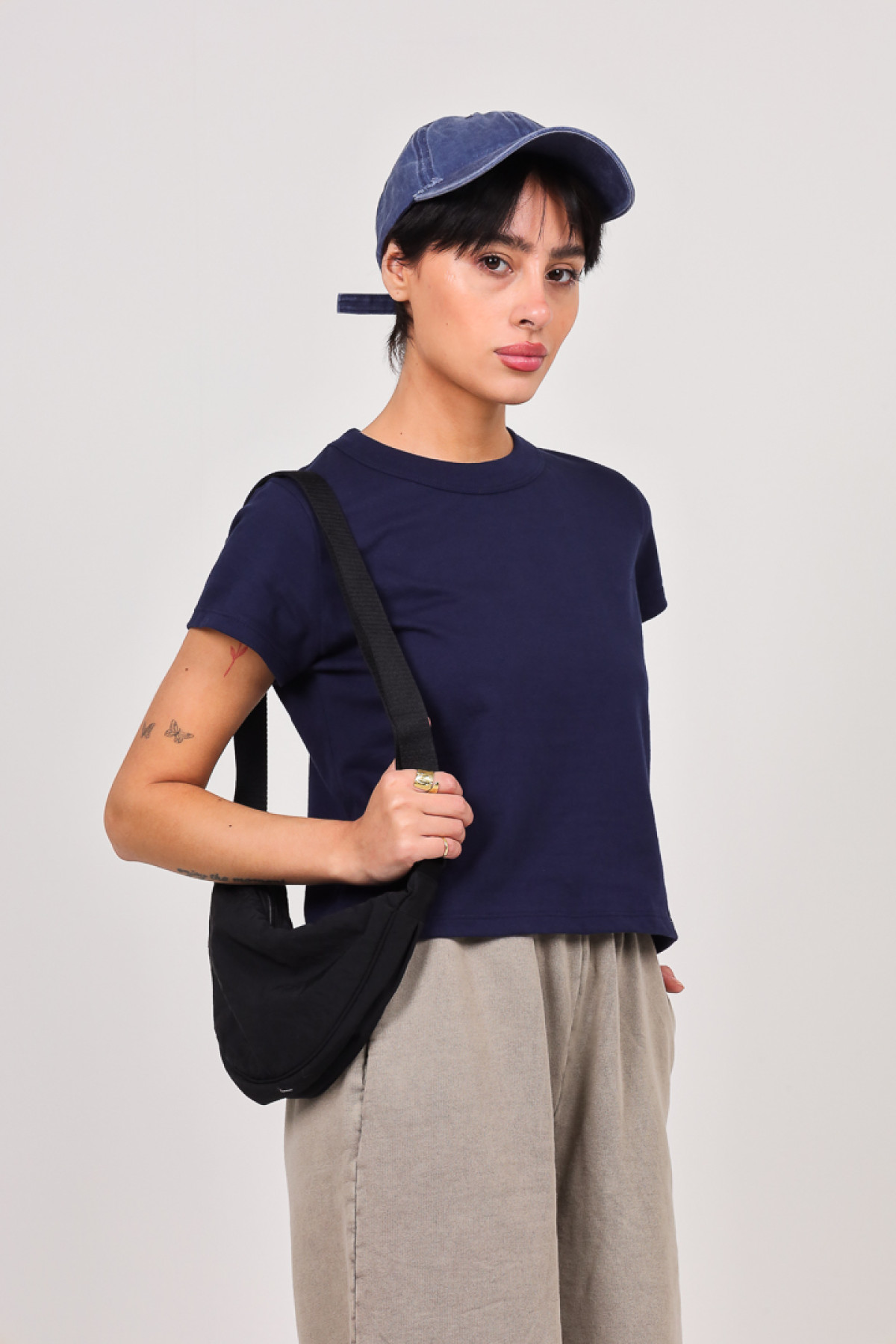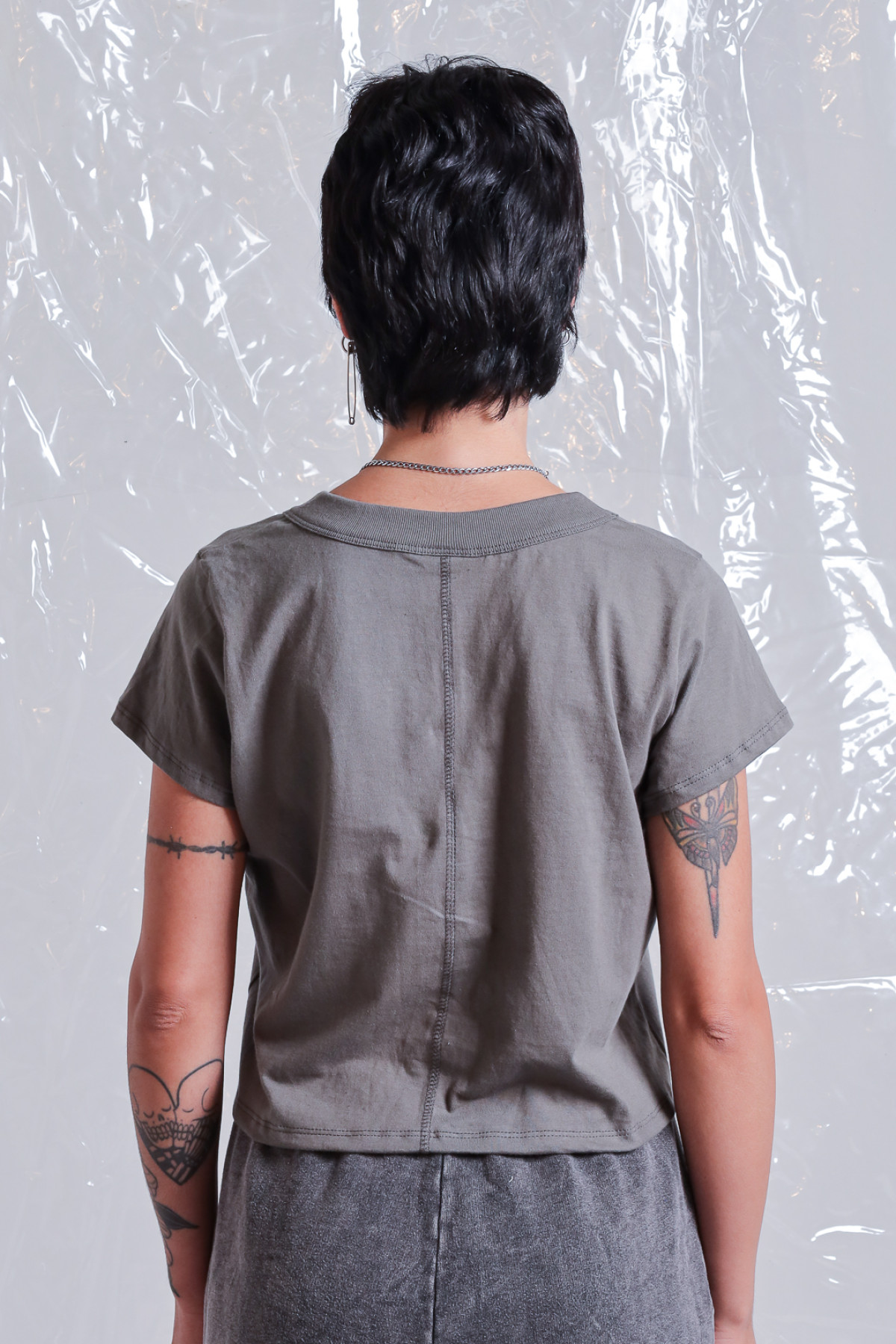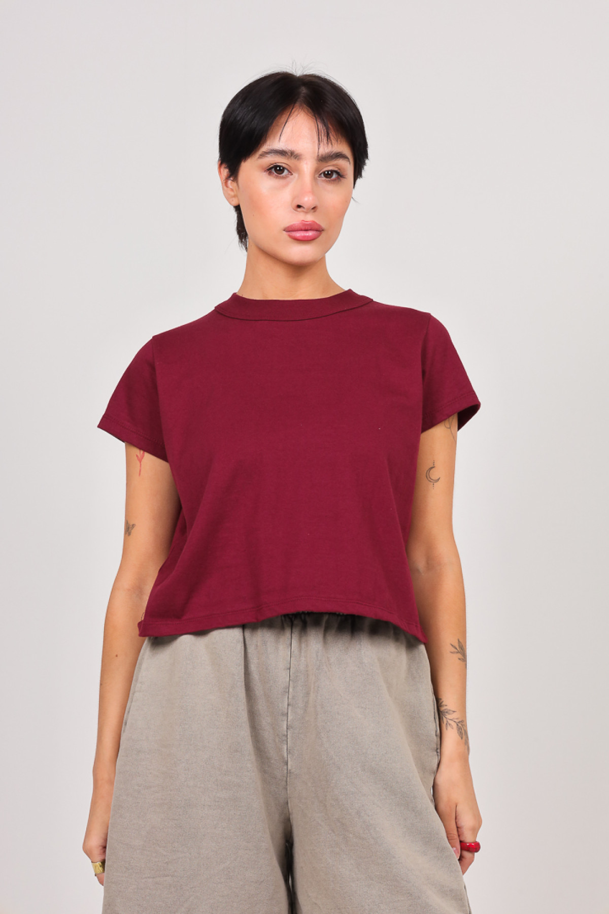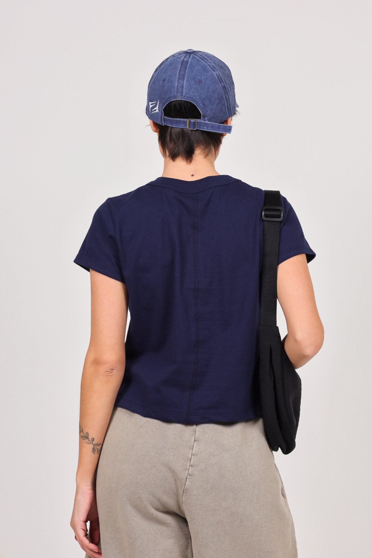 Remera de jersey, algodón 100%. Básica con espalda partida y bordador