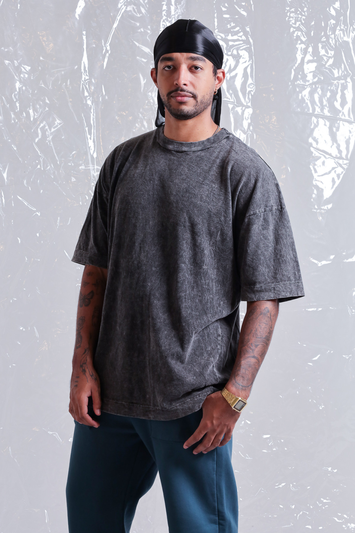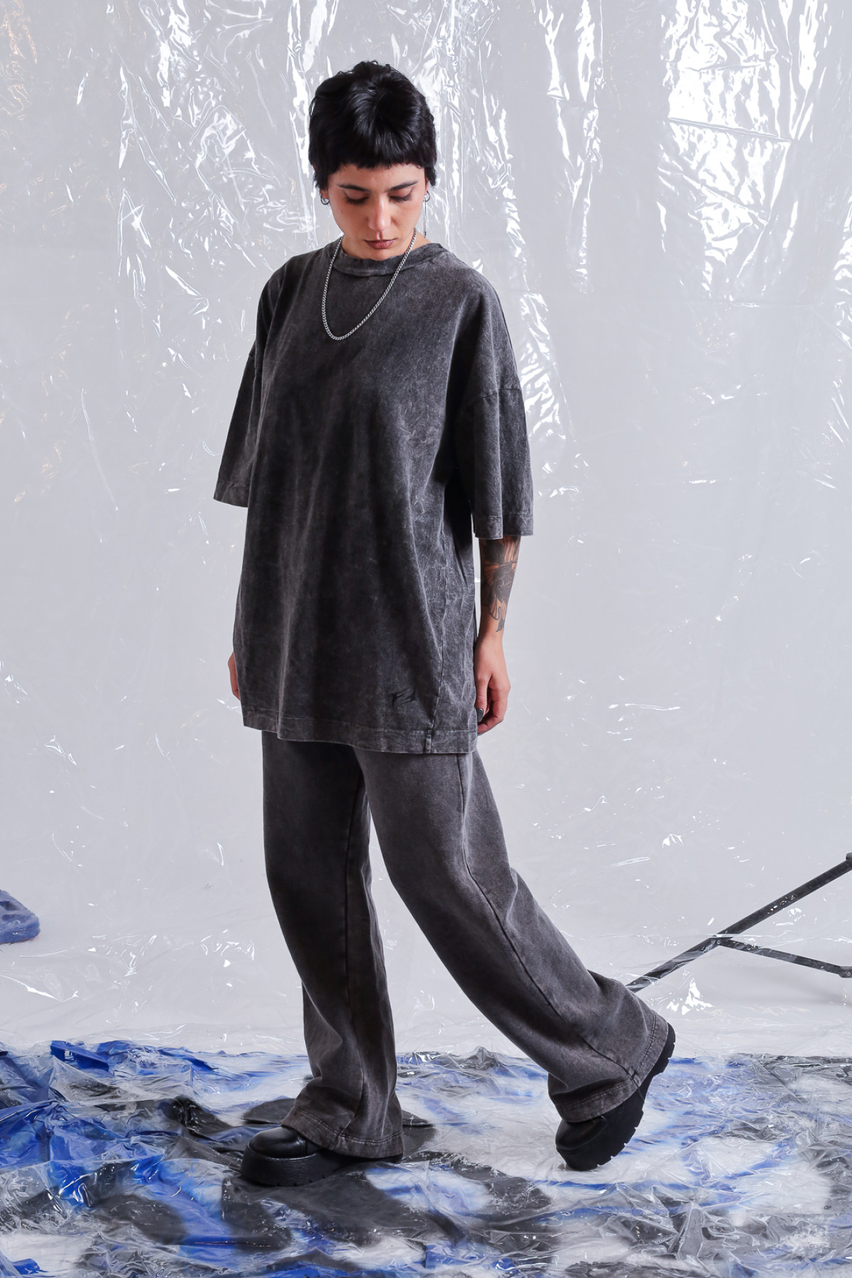 Remera jersey, algodón 100% lavado acid. Corte oversize, con logo