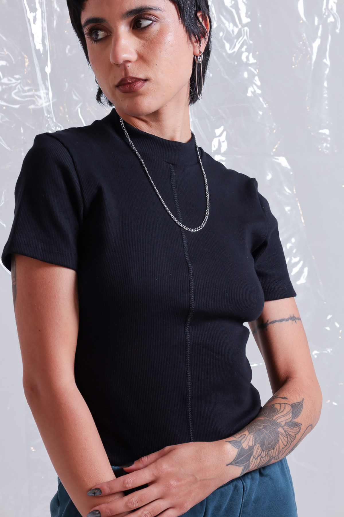 Remera morley, algodón 100% media polera, con recortes y bordador