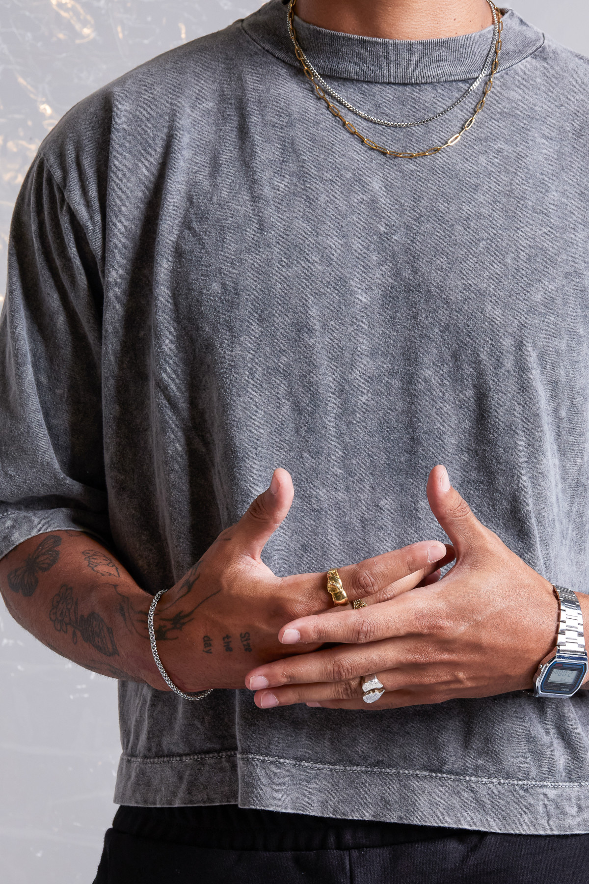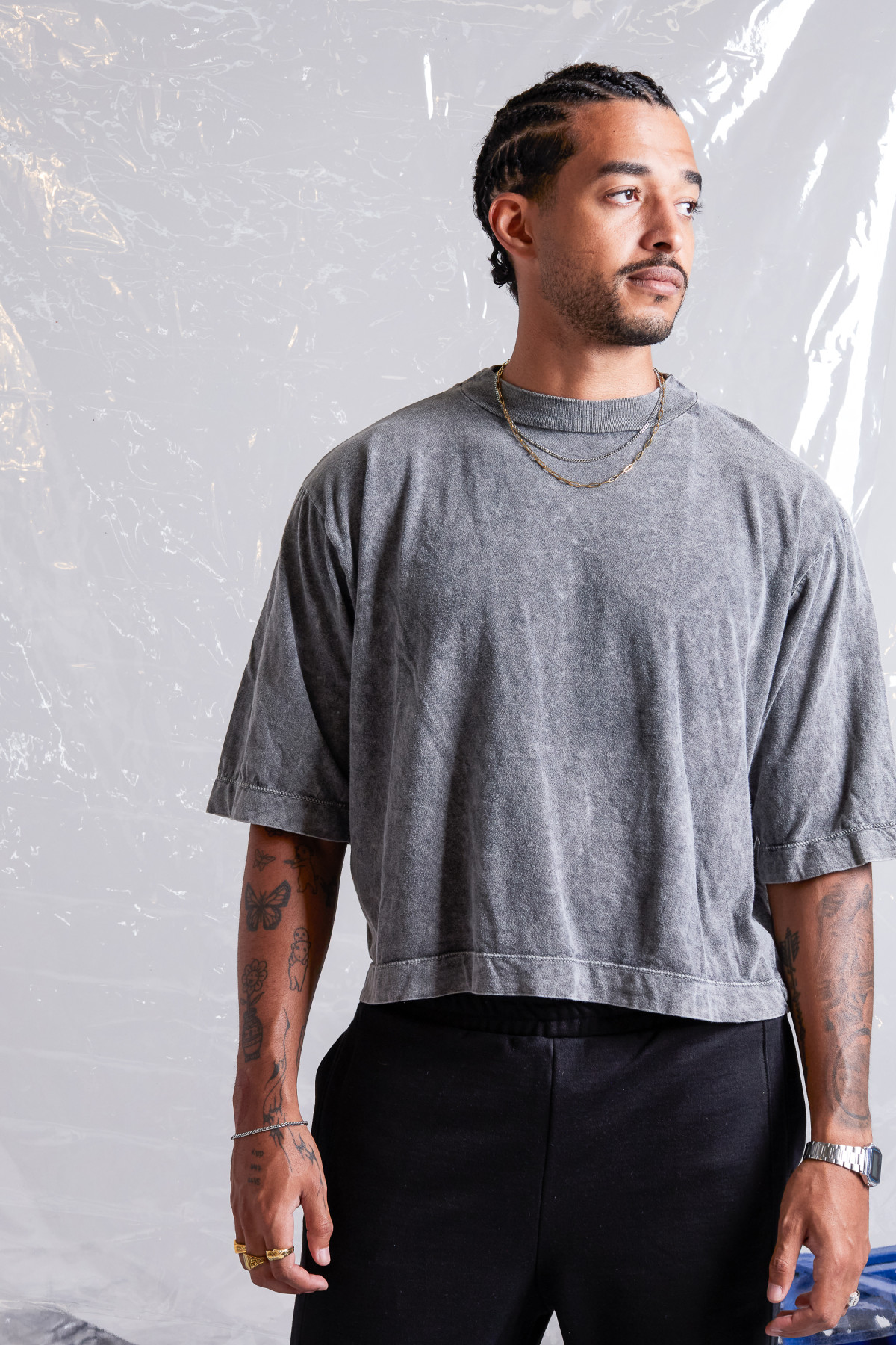 Remera jersey algodón 100%, corte boxyfit con lavado ice