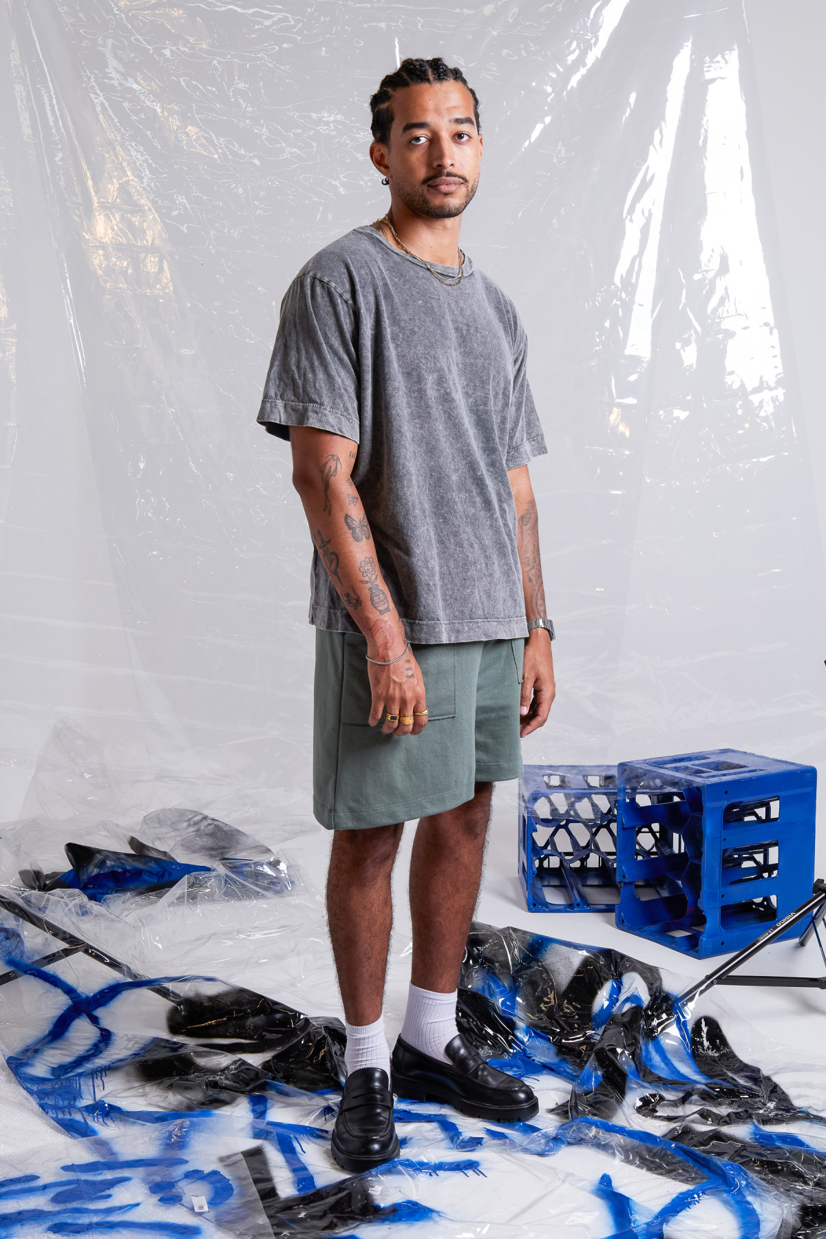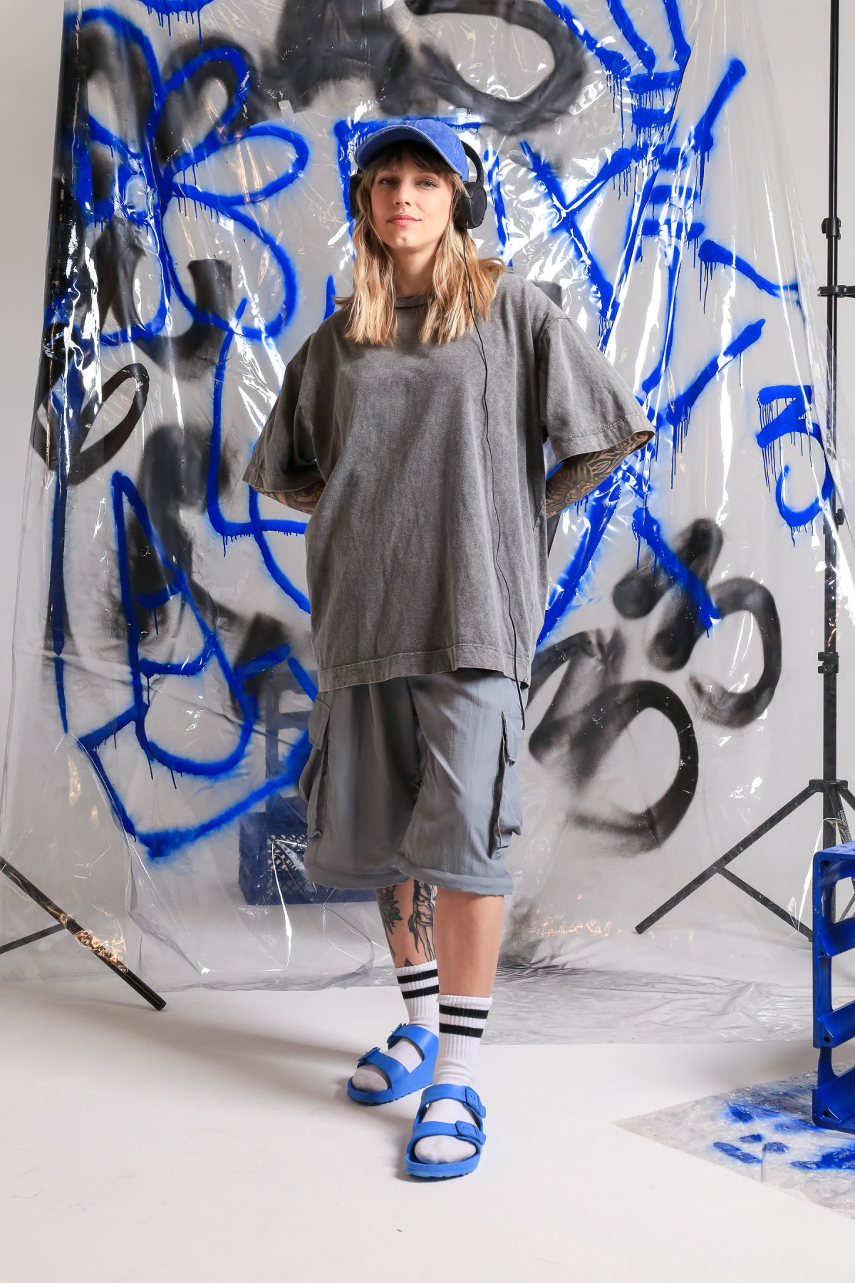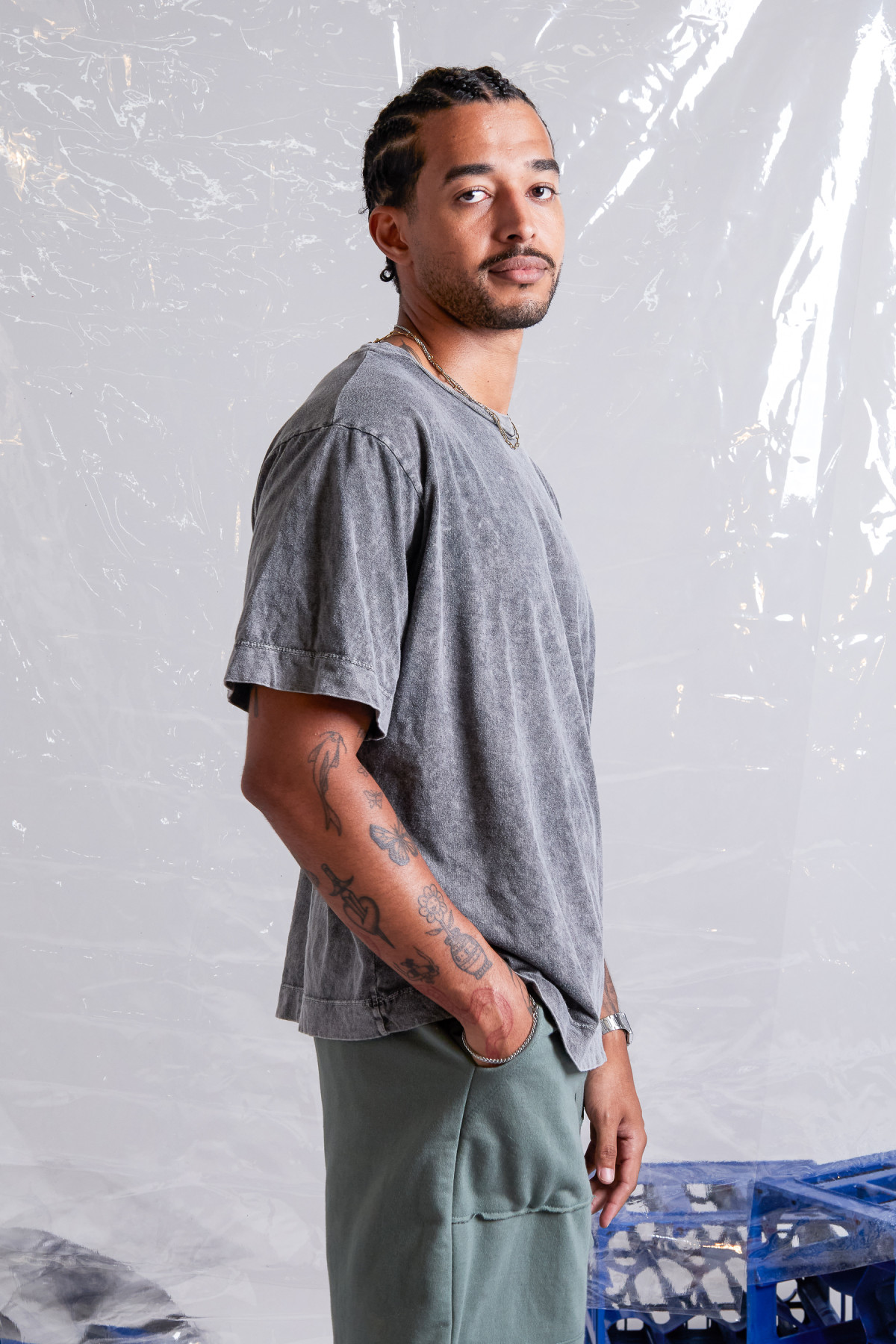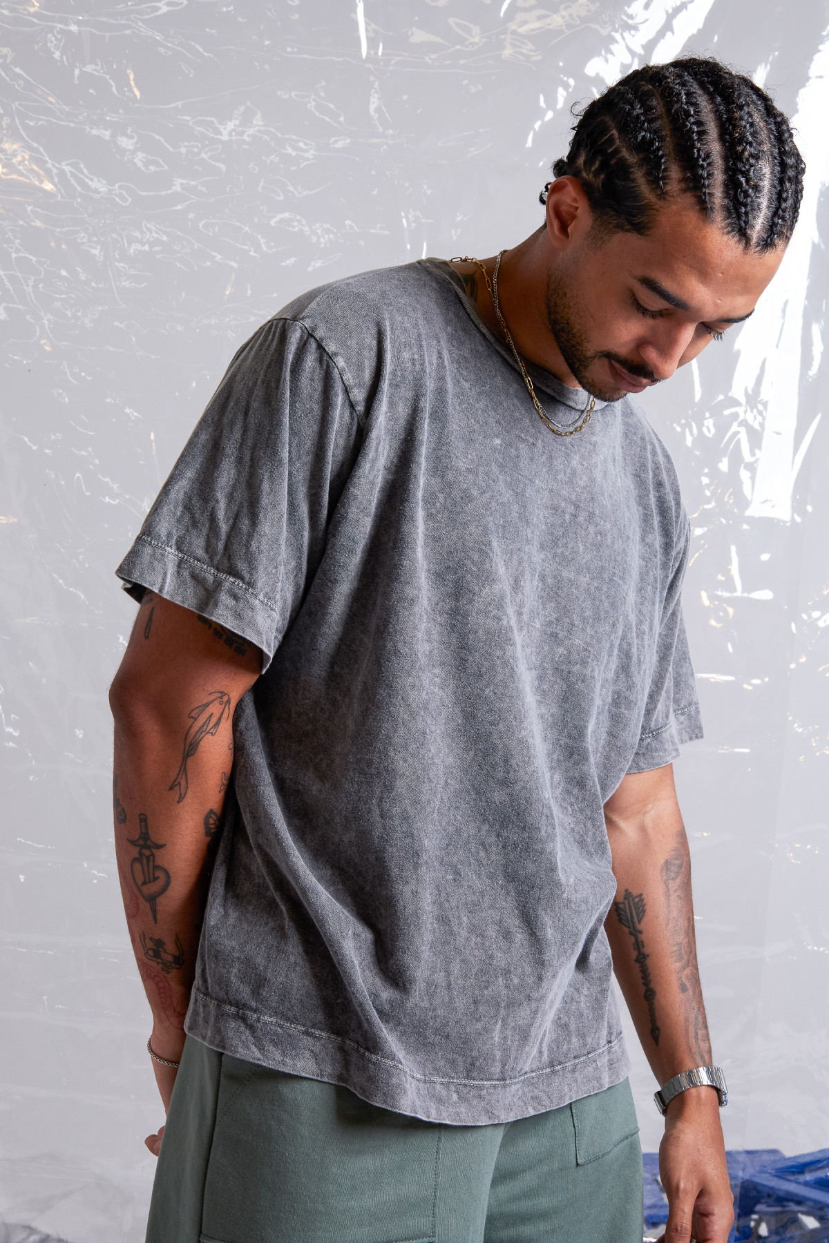 Remera jersey algodón 100%, corte overzise con lavado ice