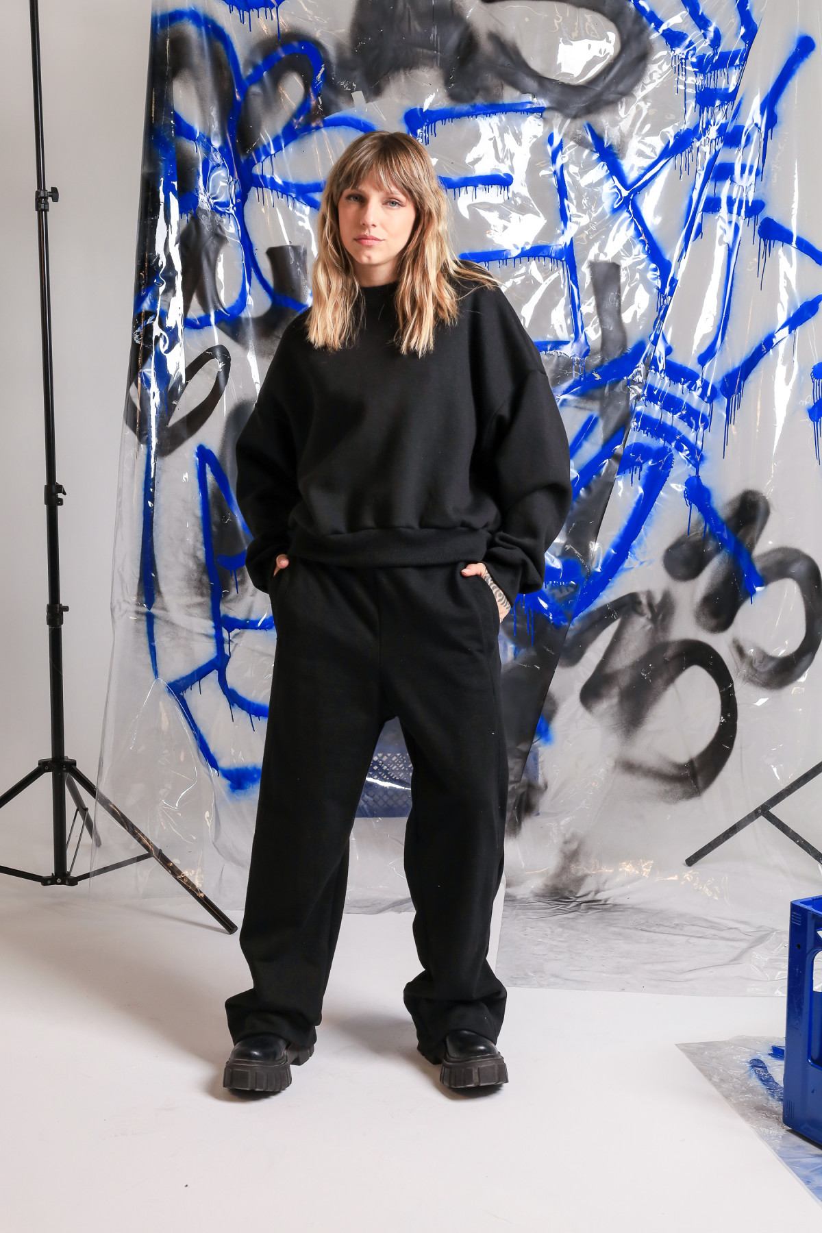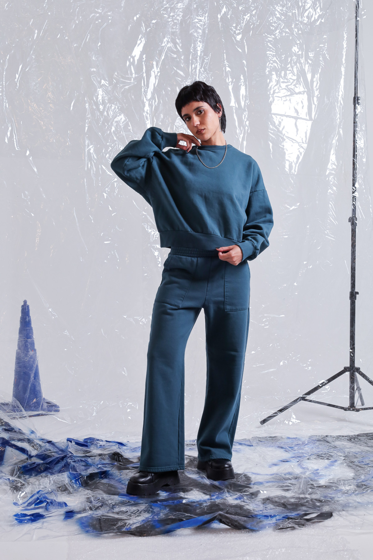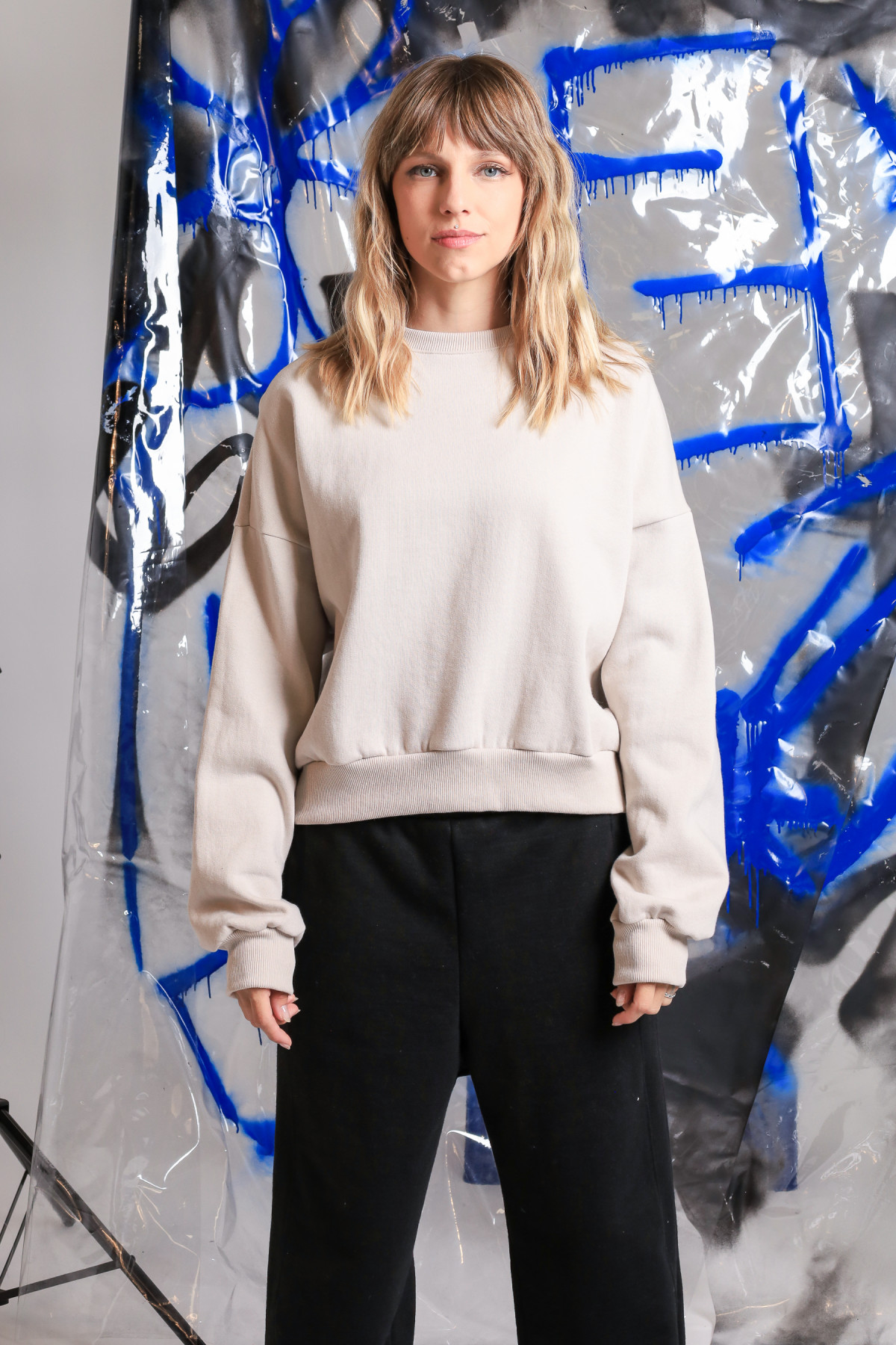 Buzo de frisa oversize, corto a la cintura, con ribb