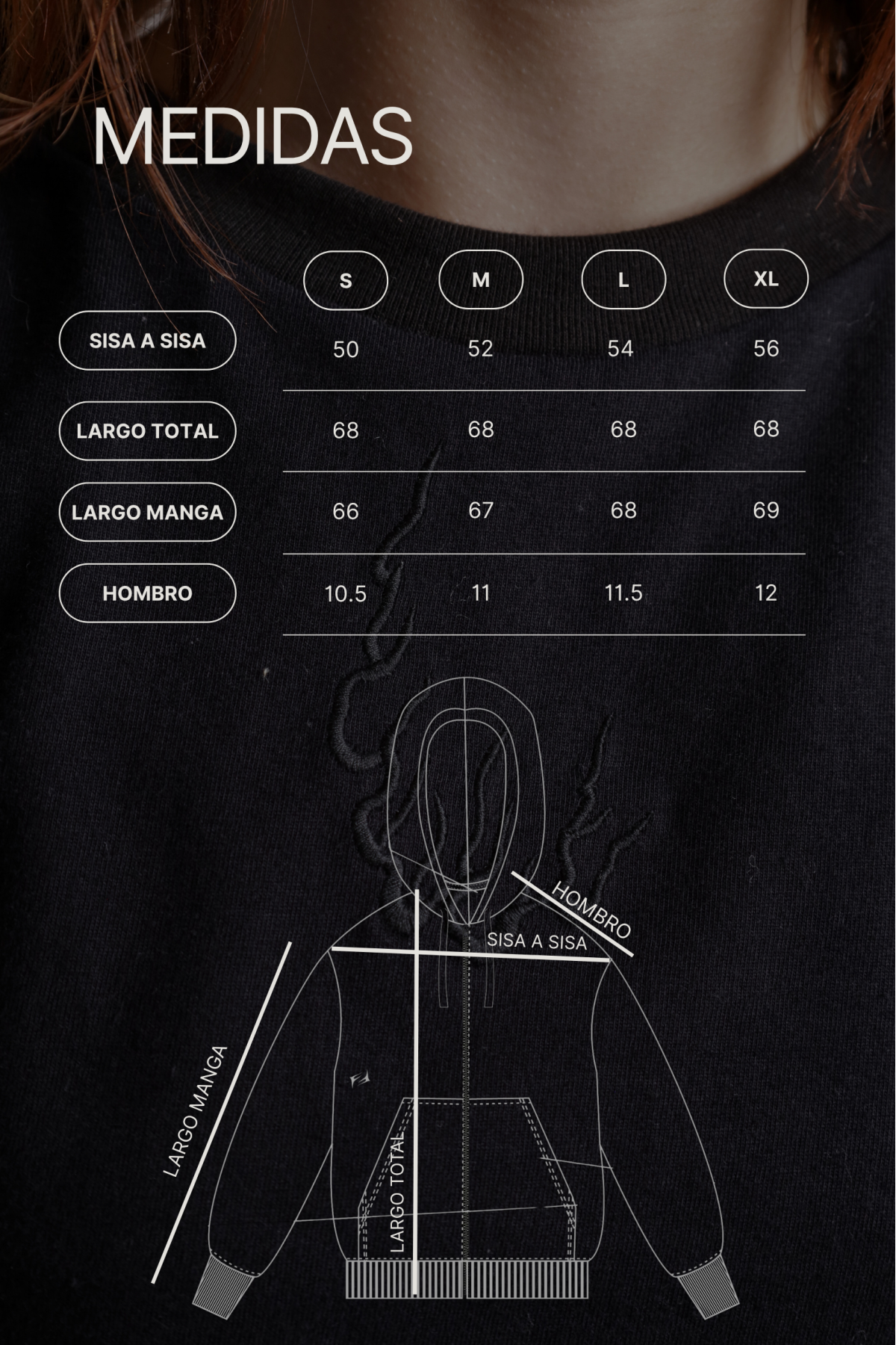 Campera con capucha frisa c/bolsillo calce regularCIERRE YKK plateado